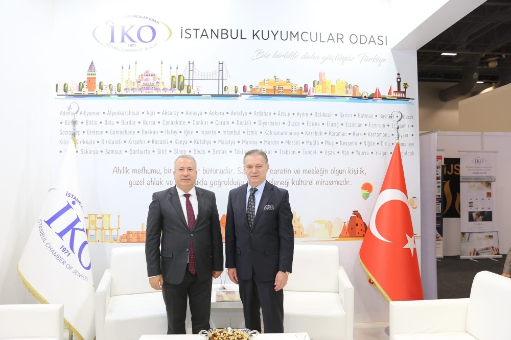 Darphane Genel Müdürü Faruk Gözübüyük, Genel Müdür Yardımcısı Fatih İcin, Darphane Dairesi Başkanı Dr. Şenol Yıldız, İstanbul Kuyumcular Odası (İKO) standını ziyaret etti ve Başkan Mustafa Atayık ve Bitlis Kuyumcular Derneği Başkanı Cevdet Kurem ile sektördeki gelişmeler hakkında istişarede bulundu. İKO Başkanı Atayık, daha sonra Darphane Üst Yönetimi ile birlikte fuarı gezerek katılımcı firmalarımız ile bir araya geldi.