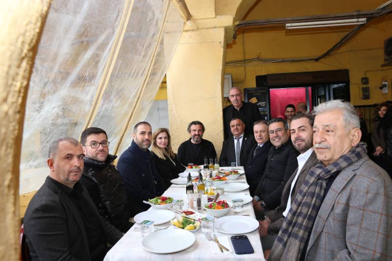 İstanbul Kuyumcular Odası (İKO) Başkanı Mustafa Atayık, Mücevher İhracatçıları Birliği Başkanı Burak Yakın, İKO Yönetim Kurulu Üyeleri; Aylin Gözen, Saylan Elidaş, Garbis Gedikoğlu, Ufuk Güneş, Volkan Algan, İhracatçılar Birliği Yönetim Kurulu üyeleri, Gümüş Eşya El Sanatkarları Derneği (GESAD) tarafından Tarihi Yarımada’nın en eski hanlarından biri olan Büyük Yeni Han’da organize edilen balık davetine katıldı. Davet sırasında GESAD Başkanı Şahin Karaman ve dernek üyeleri olan gümüş eşya esnafı misafirlerle tek tek ilgilendi.
